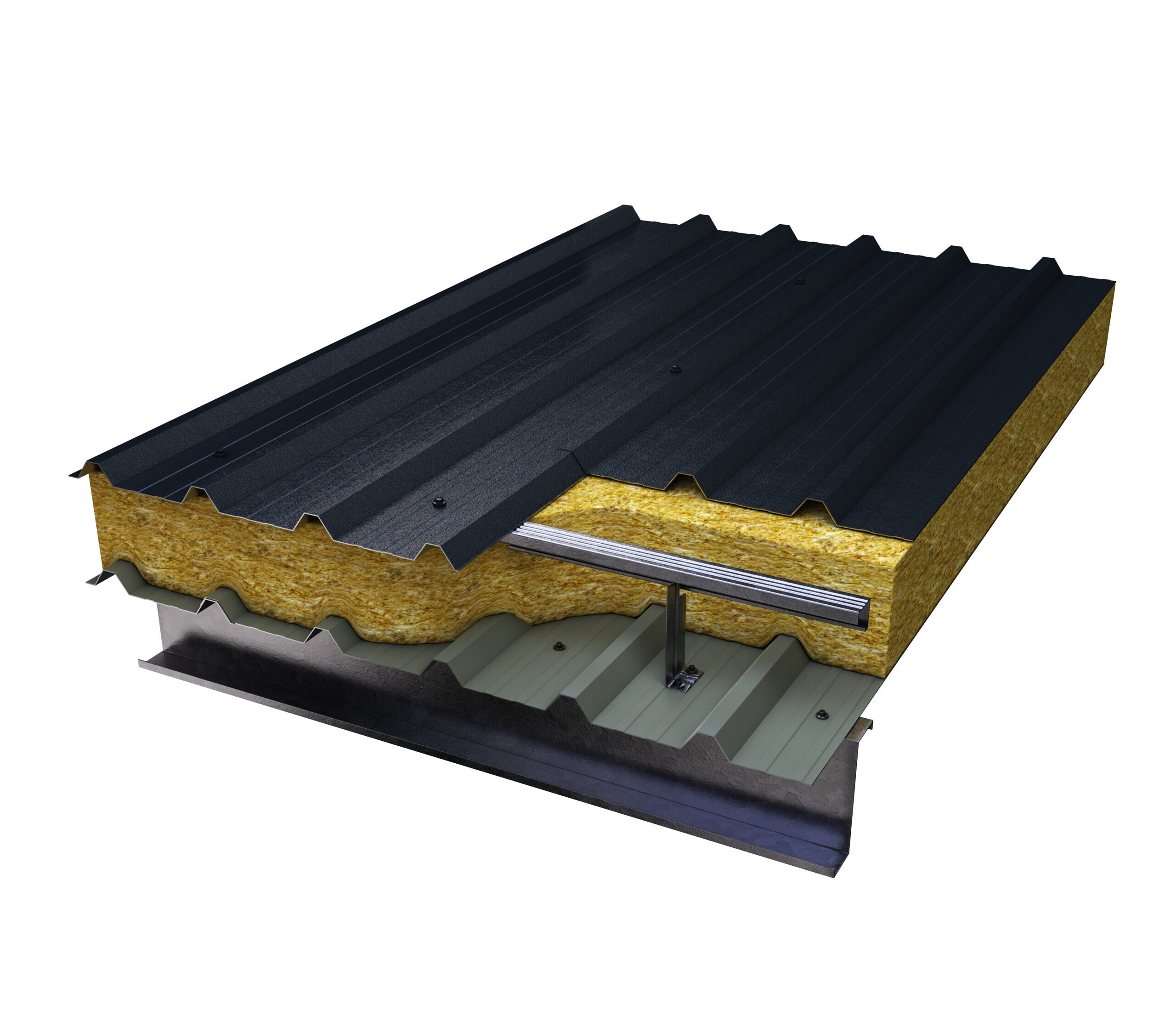 Coverworld site assembled built up twin skin roof systems comprise of a coated steel profiled weather sheet, non-combustible mineral wool insulation layer, galvanised steel spacer support system and white profiled liner sheet. The system can be tailored to suit specific U-value and non-fragility requirements, on roofs with a minimum pitch of 4° after deflection.